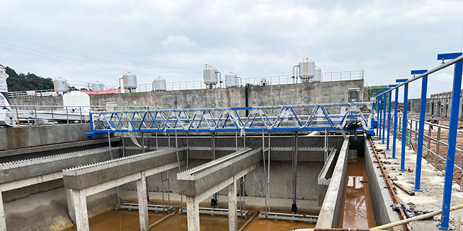液压往复式刮泥机通过液压驱动系统带动刮板在池底往复运动,将沉积的污泥持续推送至集泥坑,实现高效、稳定排泥。相较于传统桁架式刮泥机,其结构简洁、驱动力强、维护便捷,特别适用于长距离(可达100米以上)、大跨度沉淀池的污泥清除。液压往复式刮泥机的强劲与可靠,源于多个核心部件的精密联动与协同运作。1、刮板系统由高强度钢板或不锈钢制成,底部安装耐磨橡胶条或聚氨酯刮刀,紧贴池底。刮板呈倾斜设计,在前进时推泥,后退时空载返回,减少阻力。多块刮板通过连杆串联,形成连续排泥带,确保清洁。其低...